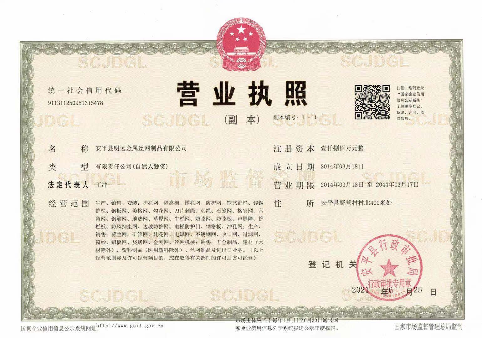 安平縣明遠金屬絲網(wǎng)制品有限公司 20年專注生產(chǎn)銷售圍欄、護欄、防護網(wǎng)廠家